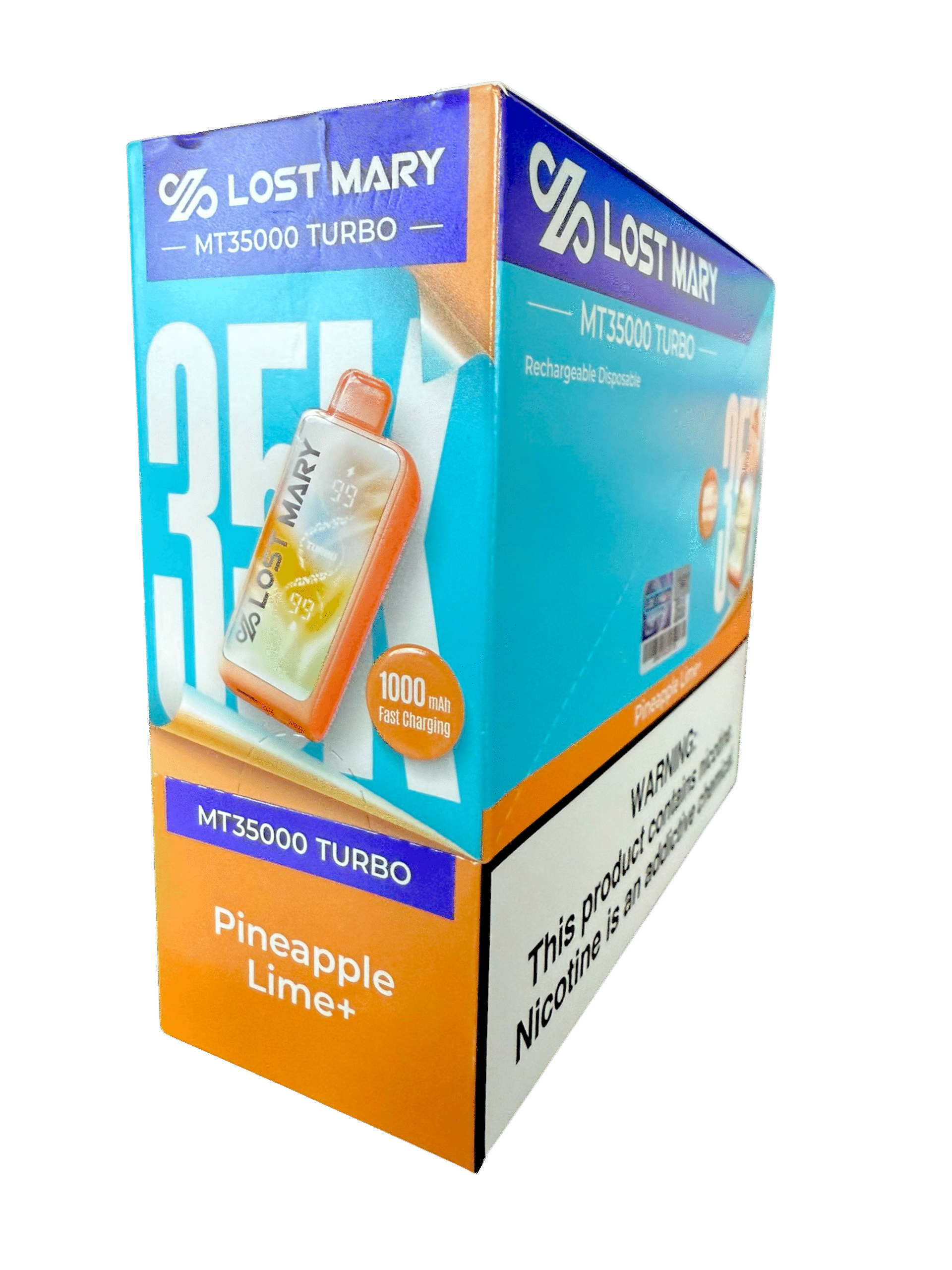 • Sabor: El Pineapple Lime+ Lost Mary MT35000 Turbo mantiene sus sabores desde la primera bocanada hasta la última y sabe a una fusión de piña y menta.
